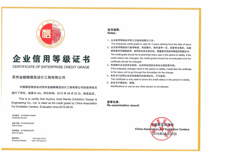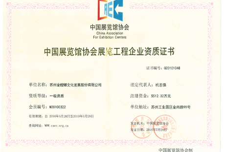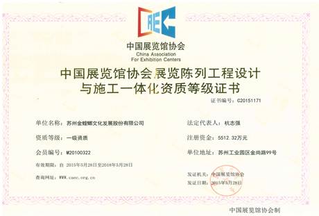 • 中國展覽館協(xié)會展覽工程一級資質(zhì)