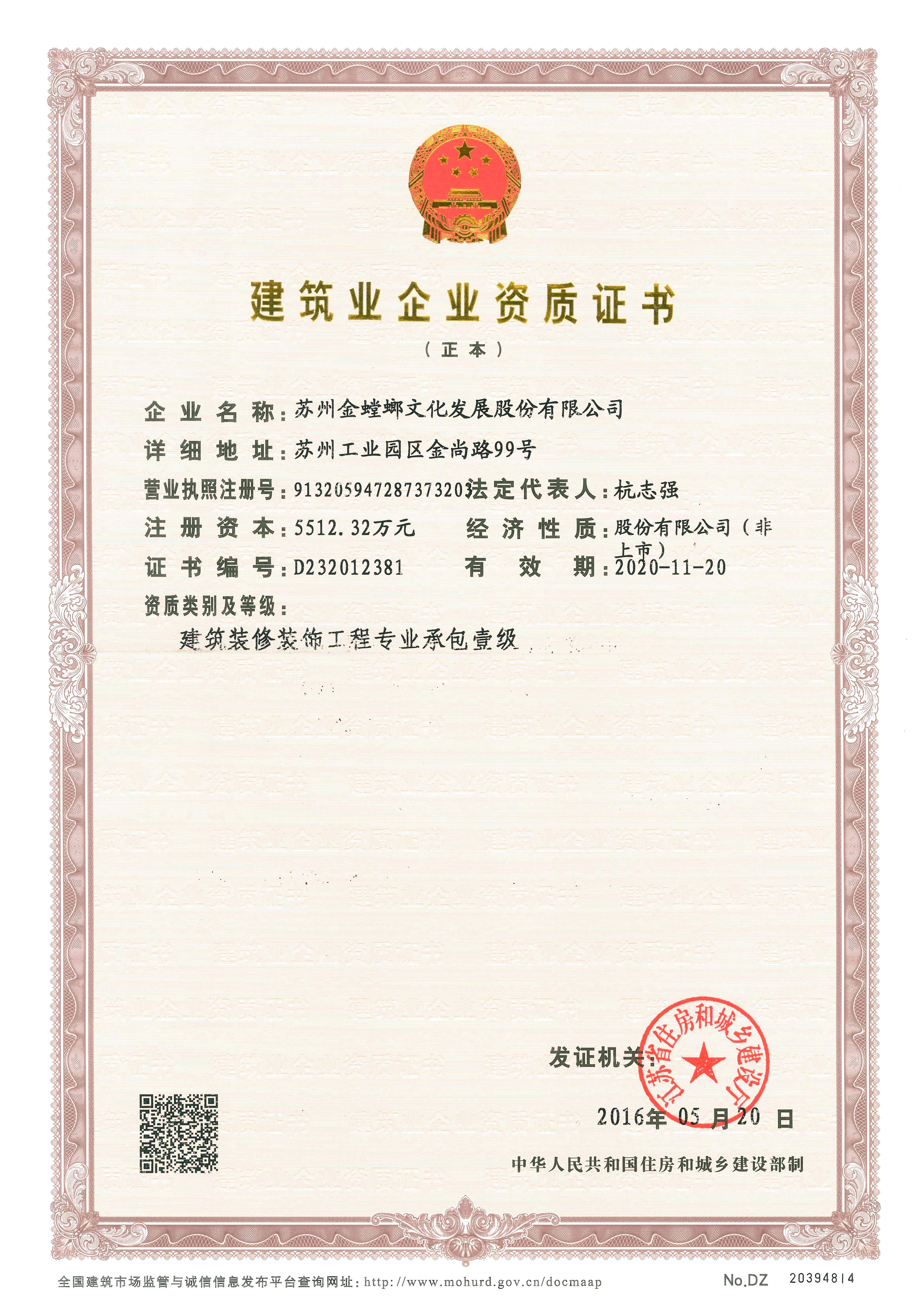 • 建筑裝修裝飾工程專業(yè)承包一級