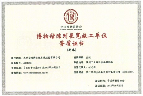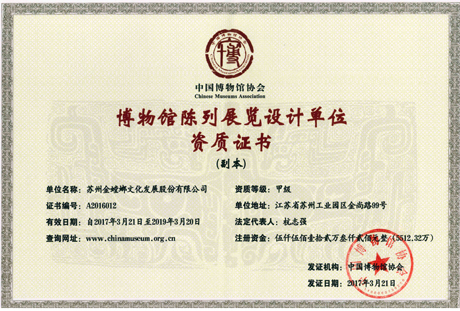 • 中國展覽館協(xié)會展覽陳列工程設計與施工一體化一級資質(zhì)