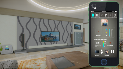 金螳螂自主開發的智慧家居系統,可通過手機平臺中實現對家居的空調、電視、音響、監控、安全門、窗、熱水器、冰箱等的控制。