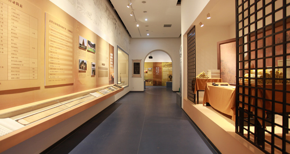 玄奘取經(jīng)博物館位于甘肅省瓜州縣離縣城東2.7公里與313國道相交通往敦煌的丁字路口處,占地面積215畝,建筑面積4600平方米。玄奘取經(jīng)博物館由三大部分組成,第一部分為服務(wù)區(qū)。第二部分為參觀區(qū),由玄奘取經(jīng)博物館主展廳,主展廳前的主題雕塑,精華洞窟陳列館和"玄奘西行銅雕"、"心經(jīng)長碑廊"、"玄奘取經(jīng)贊"、張芝紀(jì)念館等組成。第三部分為朝圣區(qū),由玄奘紀(jì)念塔,玄奘紀(jì)念堂,影視廳,觀音殿,演出廳等內(nèi)容組成。整個(gè)館區(qū)以大唐建筑風(fēng)格為基調(diào),以園林景觀為背景,呈現(xiàn)出西北地域特色。