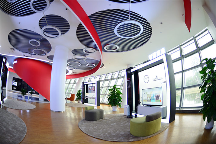華數企業展廳暨國家廣電總局數字電視開放實驗室,位于杭州市華數白馬湖數字電視產業園H 樓一樓, 兼具展覽展示、貴賓接待、創新實驗、培訓指導、訪談發布等功能。展廳主要以多媒體展項為主,其中尤以OLED大型雕塑最為大氣磅礴,由65臺曲面柔性OLED拼接而成,類似雕塑在全球亦屈指可數。