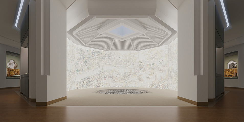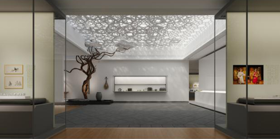 蘇州博物館西館位于蘇州高新區(qū)獅山廣場,規(guī)劃建筑面積4.83萬平方米,展廳面積1.31萬平方米,將于2021年建成開館。 蘇州博物館西館包含蘇州通史展廳、蘇作工藝展廳、書畫館、探索體驗(yàn)館、國際合作館等展廳。金螳螂文化于一月初中標(biāo)通史館深化設(shè)計(jì)與布展實(shí)施項(xiàng)目,以模數(shù)化設(shè)計(jì)打造被光包裹的詩意空間。 展陳面積四倍于蘇州博物館本館,蘇州博物館西館集覽、讀、品、鑒、游于一體,其基調(diào)底蘊(yùn)與蘇博本館一脈相承,展陳手法又具有一定的差異性,旨在打造一個典雅、莊重、大方同時又具備國際視野的新型展館。 風(fēng)流吳地,天下蘇州。金螳螂文化團(tuán)隊(duì)融合多樣化元素,通過抽象的幾何之形、模數(shù)化之設(shè)計(jì)表達(dá)江南詩意之精神,盡述吳地歷史沿革與人文風(fēng)物,傳遞對展覽的深入思考。 有序中不失變化,方角中更顯圓潤。在蘇博西館設(shè)計(jì)中沿用了模數(shù)化設(shè)計(jì)的概念,并引入了紫藤的概念,代表著蘇博文脈的延續(xù)。 以數(shù)字多媒體、場景藝術(shù)演繹等多種方式輔助解讀展陳內(nèi)容,運(yùn)用白描、抽象、寫意的手法,展現(xiàn)蘇州的文明變遷及城市發(fā)展,動靜結(jié)合,呈現(xiàn)出鮮活的蘇州印象。