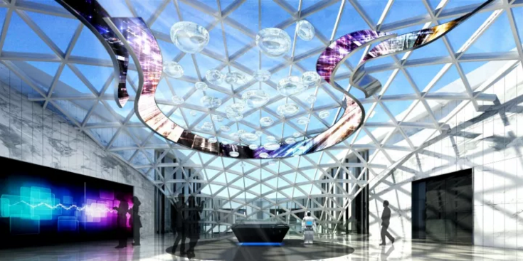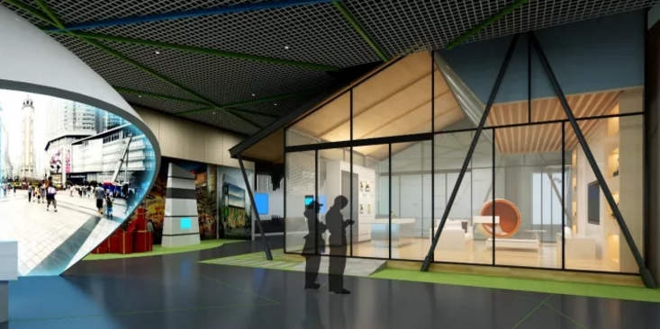 設計團隊在行業內率先牽手微軟HoloLens技術,讓展館正式進入混合現實時代,創新地把HoloLens技術應用到城市規劃沙盤上,戴上HoloLens眼鏡,傳統的物理沙盤立即煥發出新的活力。