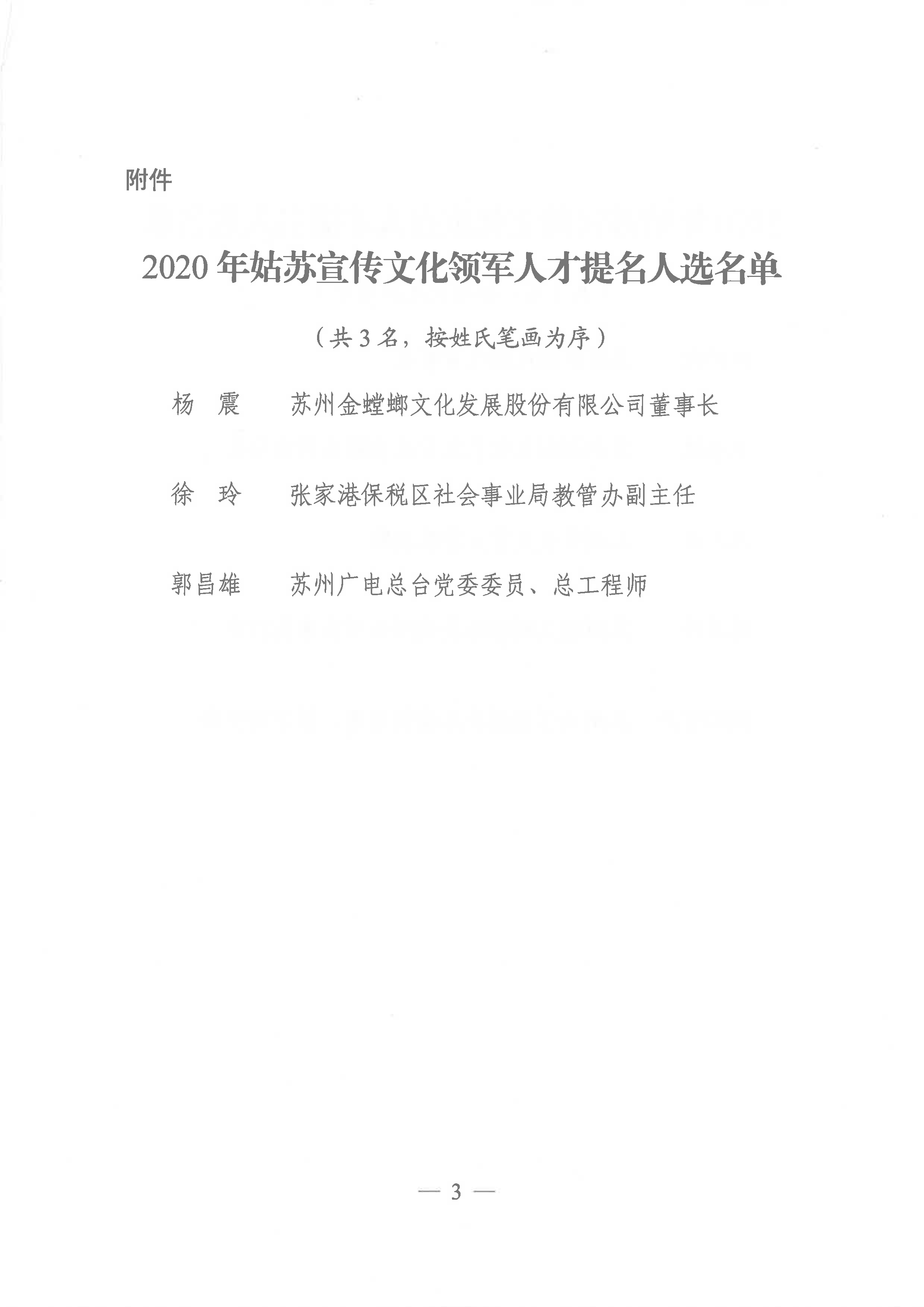 中共蘇州市委宣傳部發(fā)布了2020年姑蘇宣傳文化人才名單,確定金螳螂文化董事長(zhǎng)楊震先生2020年姑蘇宣傳文化領(lǐng)軍人才提名人選。