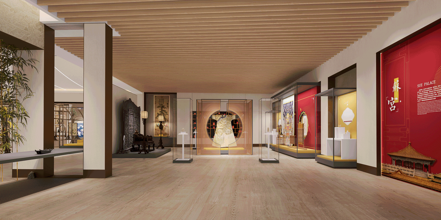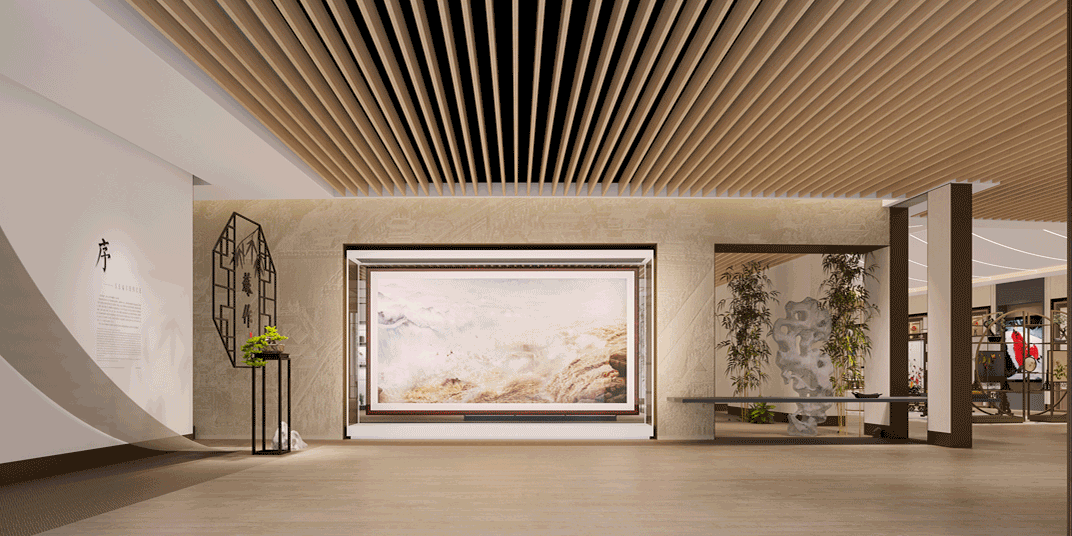同時,根據(jù)展銷蘇作工藝品特點,綜合運用多媒體、藝術(shù)品、立面圖板、輔助展品等形式,全面地傳達展品信息,詮釋蘇工蘇作之精巧,傳播生活美學。