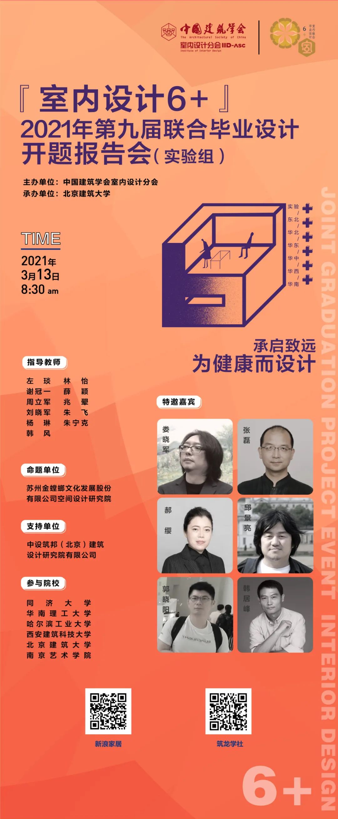 3月13日,由中國建筑學會室內設計分會主辦的室內設計6+”2021年第九屆聯合畢業設計(實驗組)開題報告會順利舉行。實驗組高校、行業知名企業、特邀嘉賓共同參與線上會議,共計13萬人次參加。