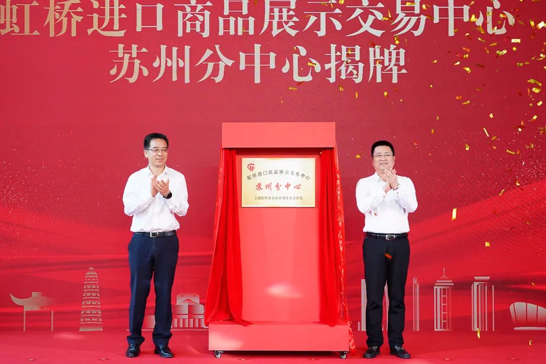 毛偉書記和季勝君總裁共同為虹橋進口商品展示交易中心蘇州分中心揭牌。