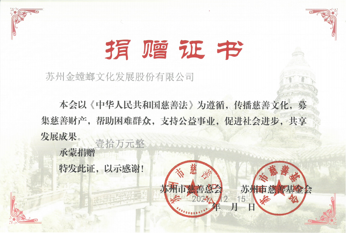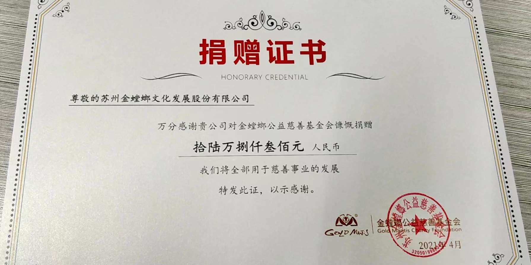 凝聚慈善力量,履行企業社會責任。金螳螂文化將持續投身公益事業,以責任之心助力事業發展,真誠回饋社會,身體力行為社會創造更大的價值。
