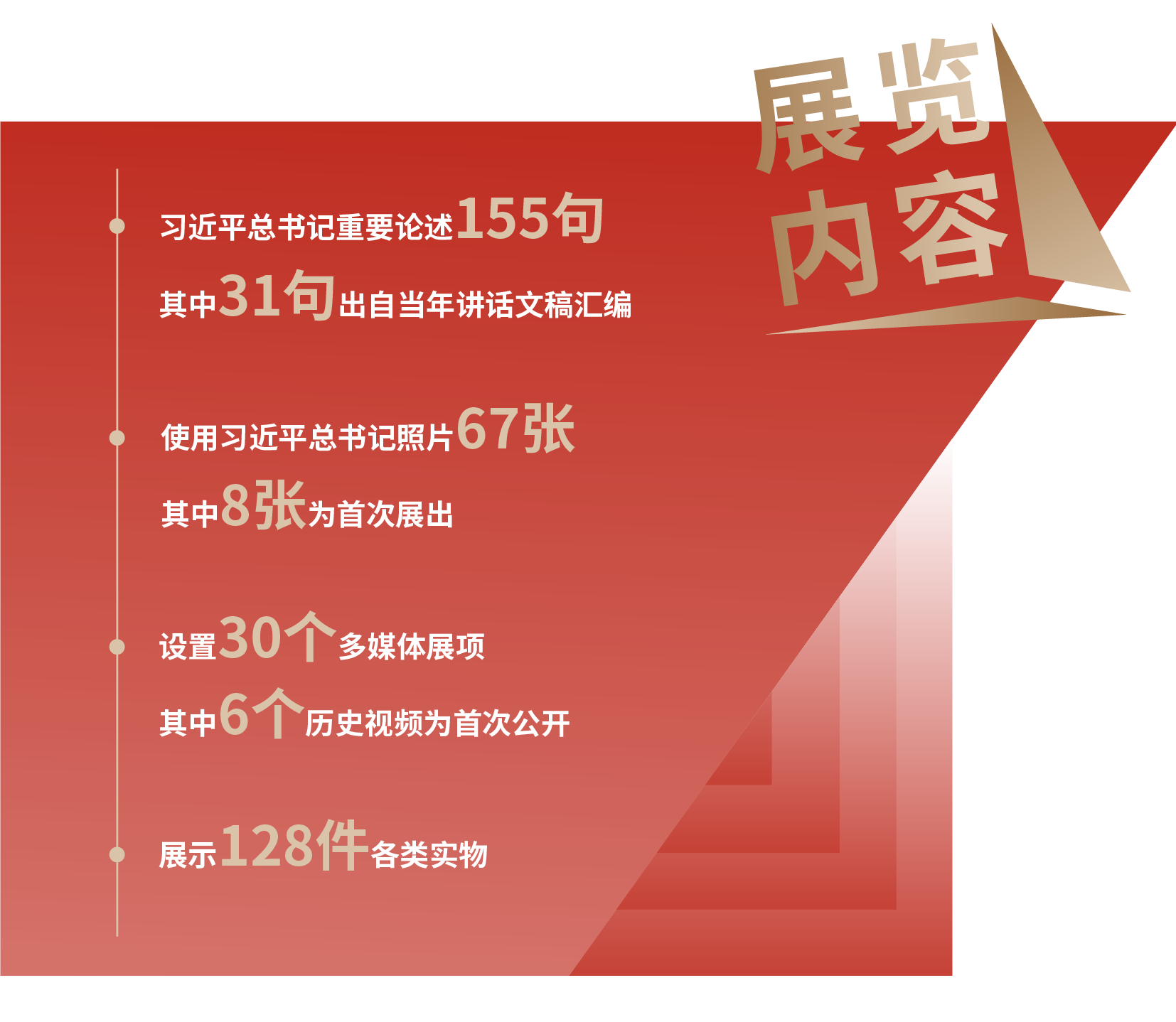 本次成就展以“3820”戰略工程為主線,共分戰略擘畫、重大實踐、賡續奮斗三個篇章,展覽面積3820平方米。