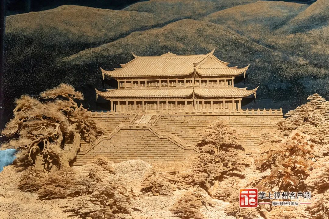 在“牢記囑托”展區,大型軟木畫屏風《閩都古韻》一面雕刻著習近平總書記所寫的《〈福州古厝〉序》,一面運用浮雕、圓雕、透雕等技法,刻畫了鎮海樓、華林寺、林則徐紀念館、戚公祠等福州古厝,雕琢出山城相依、山水環抱的閩都風貌,展現了習近平總書記對歷史文化、歷史建筑的珍愛珍視。