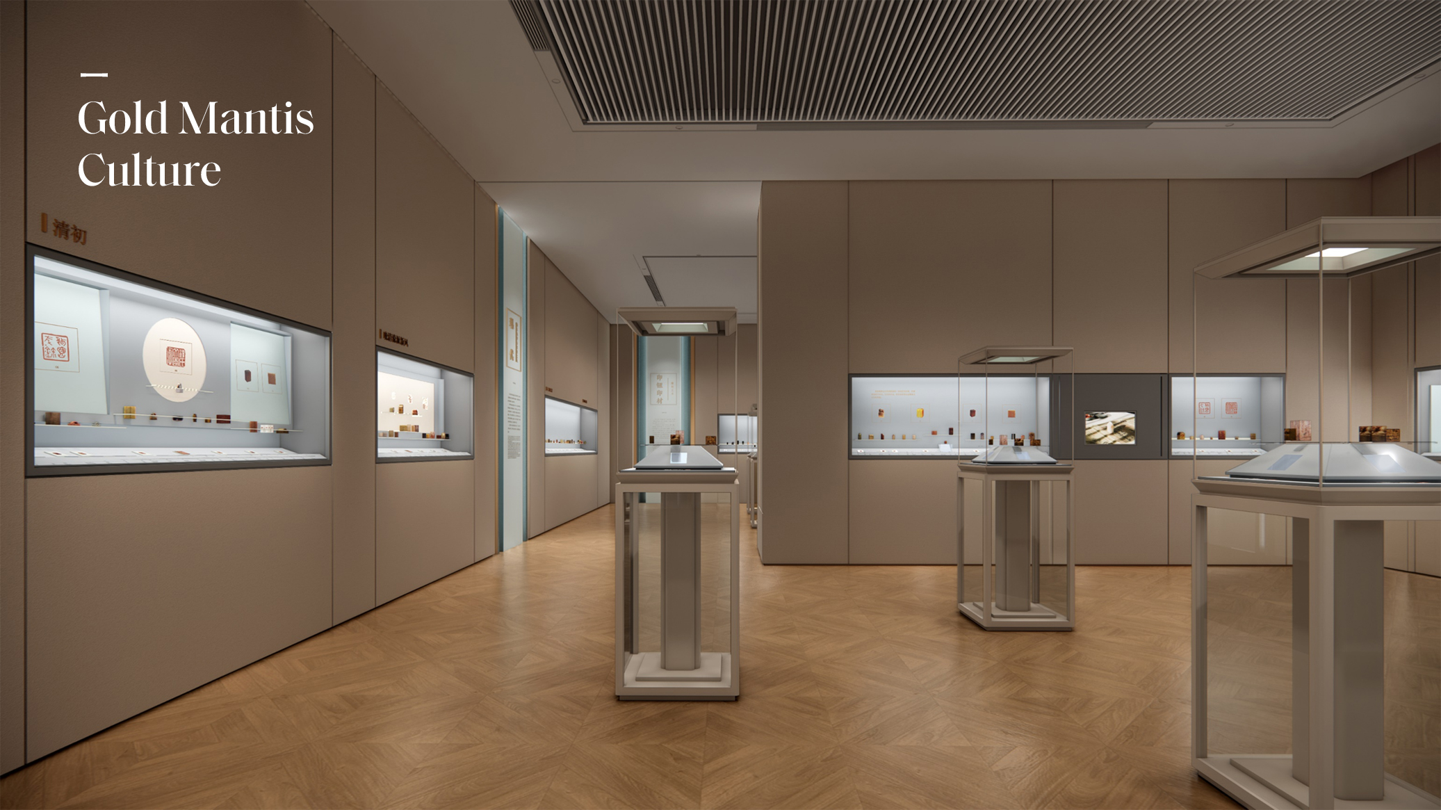 金螳螂文化承接上海博物館東館璽印篆刻、玉器、江南造物及文保展示館共 4 個廳的陳列展覽項目。