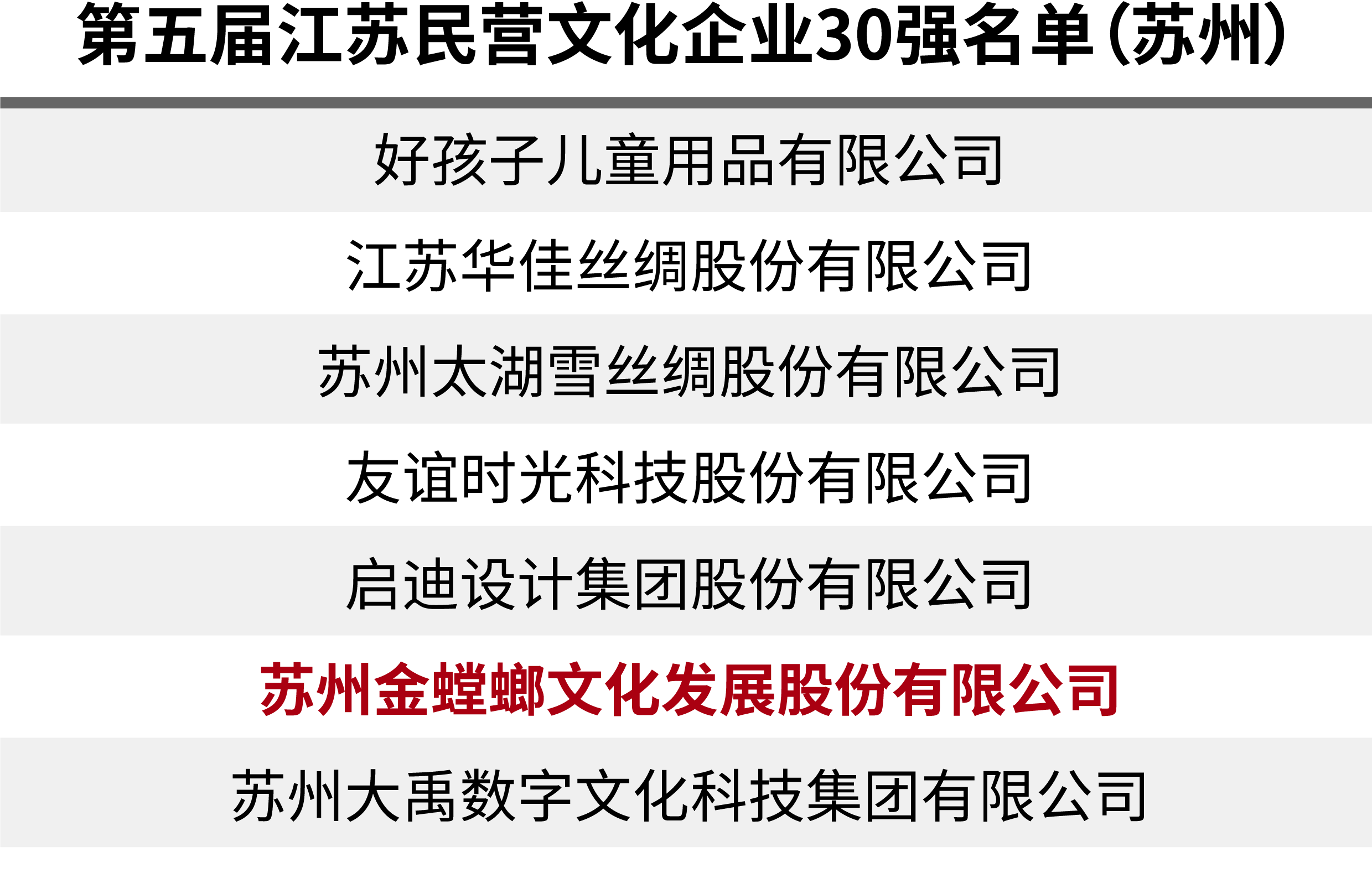 金螳螂文化再次上榜!江蘇民營文化企業30強