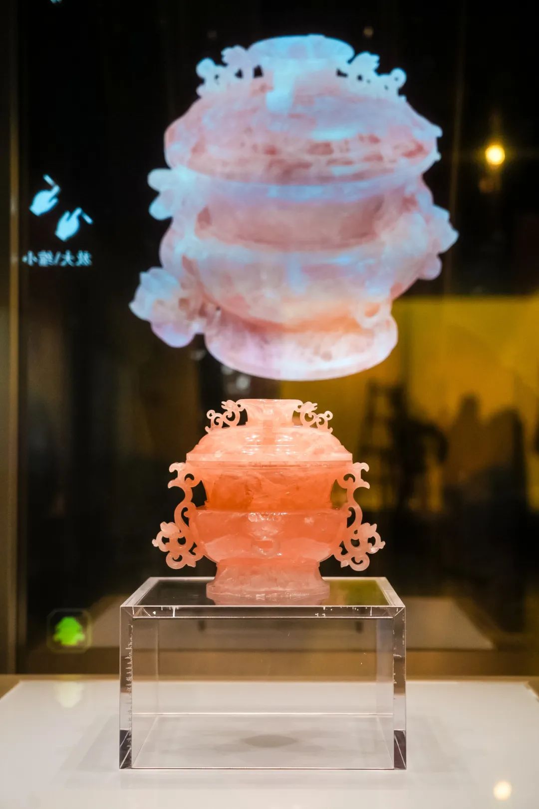 其中最惹眼的,當(dāng)屬清乾隆芙蓉石蟠螭耳蓋爐,也就是乾隆最愛的“小粉爐”,吸引了眾多觀眾朋友前來打卡,一窺真容!