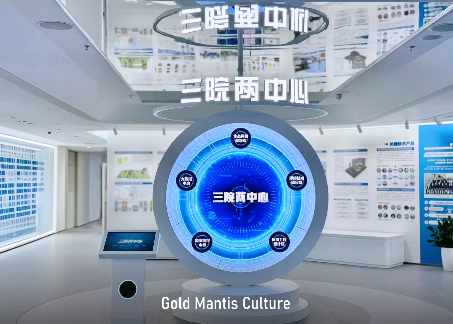 提質向新,逐綠而行。以互動屏幕方式展示三院兩中心架構及介紹。