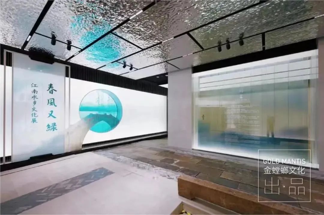 由金螳螂文化設(shè)計實施的基本陳列“春風(fēng)又綠——江南水鄉(xiāng)文化展”位于東館區(qū),共五個單元。展覽運用置景、文物展陳、圖片、視頻等方式表現(xiàn)江南的自然造物與風(fēng)土人情,詮釋江南獨有的清雅之美與文化精神。