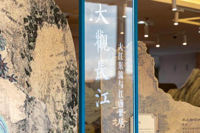 該展覽以《長江大觀全圖》、長江流域線路圖和紙質(zhì)裝置三位一體的展示方式,設(shè)置“起·溯源”“承·煙火”“轉(zhuǎn)·激蕩”“合·共生”四大篇章。