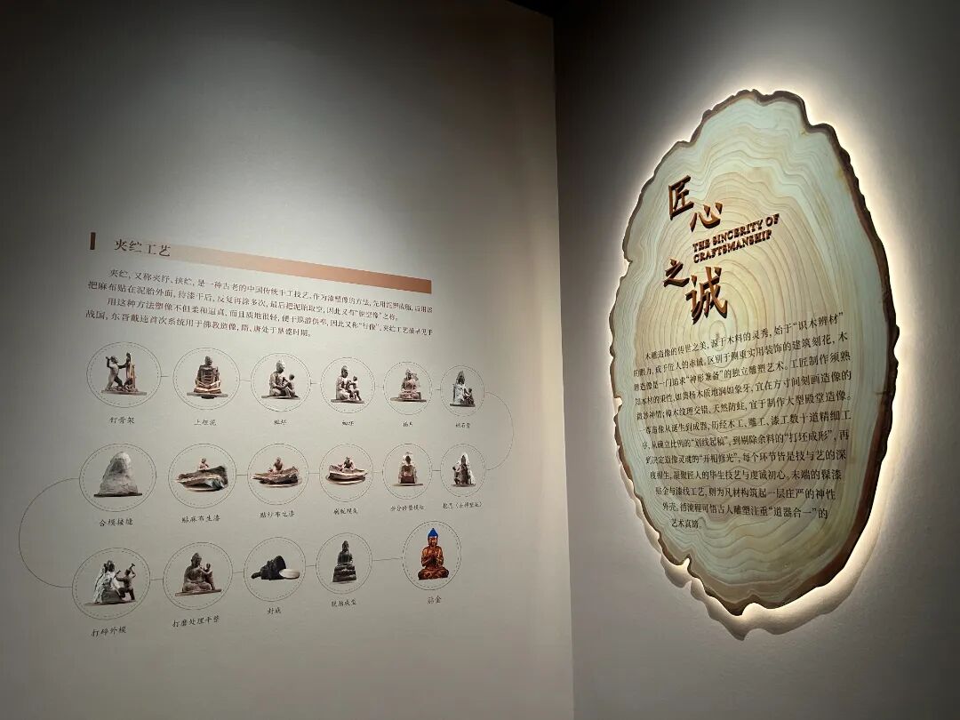 展覽 由表及里、由物及人、由技入道 的敘事邏輯,層層深入地探尋古代木雕背后人與自然的和諧共生、造像形制與精神內(nèi)核的交融互鑒、匠人初心與信仰追求的同頻共振,完整勾勒出木雕造像藝術(shù)承載的文化精神圖譜。